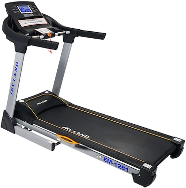 SKY LAND EM-1281 Light Commercial treadmill is made by the original manufacturer and our products are genuine As a seller with a personal opinion and 3HP up to 4.5 HP peak Quite & Powerful AC Motor - allowing for speeds ranging from 1-20 KM/H Pre-assemble of 90%. This light Commercial treadmill boasts a compact footprint with convenient 4x transportation wheels even in folding to move around without hassle. You can either store it in your living room, study, a small corner and Under the Sofa. A simple title of this light commercial treadmill for home helps you without carrying the weight. In Dashboard Built-in Speaker ,7 inches Large LCD display and 18 Preset Program, 7 quick button speed and 5 quick button for include and can adjust the speed or incline - Tracks all necessary performance statistics while running on this treadmill, which includes speed, time, distance and calories burnt to keep you focused on achieving your fitness goals.- Quick buttons help instantly start or stop the running machine or easily change speed settings during a workout. Running Surface of the treadmill L: 1410 x W: 500 mm. Treadmill Product Size: L-189 x 82 cm x 143 cm (assembled size) L: 116 X W: 82 X H: 159 cm (Folding Size) L: 219 X W: 86 X H: 36.5 cm (Shipping Size) Product Gross Weight: 102.5 Kgs. Product Net Weight: 89 Kg. Max User weight capacity: 150Kgs. ( Pre-Assemble of 90%)