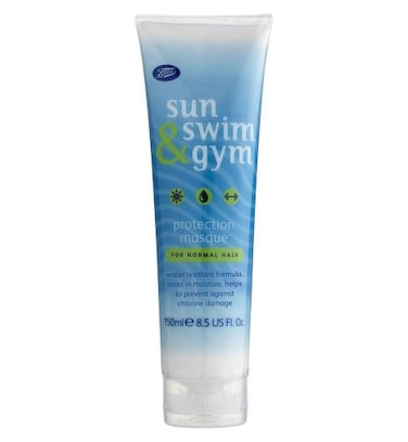 Boots Sun Swim and Gym Protection Masque for Normal Hair.Water resistant formula. Locks in moisture. Helps prevent against chlorine damage