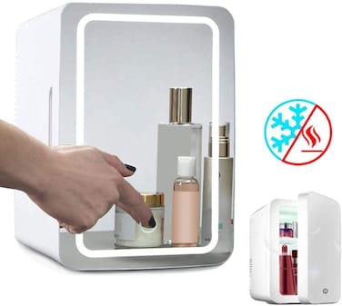 Dongbin Mini Fridge Makeup, Mini Fridge Of Cooling And Heating With Mirror And LED Lighting, 8L In Dual-Use Car Refrigerator Family For Skin Care
