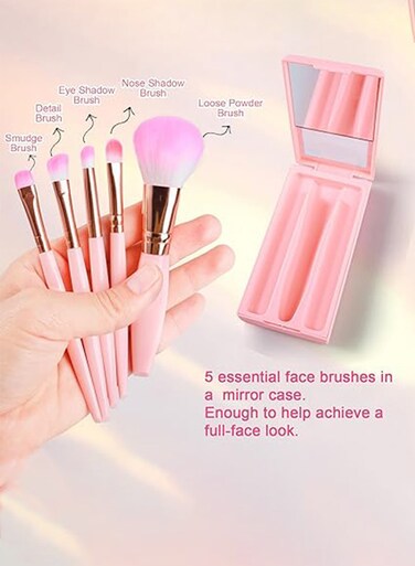 Makeup Brush Set with Mirrored Case Portable Kit with 5 Brushes