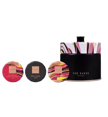 - How to use Directions: apply to wet skin and lather well. rinse off thoroughly Hazards and cautions Warnings: avoid contact with eyes; if product gets into the eyes, immediately rinse off well with water. for adult use only. Important info This gift contains: Violet Bergamot Fragranced Soap 90g, Raspberry Orange Blossom Fragranced Soap 90g, Rose Cassis Fragranced Soap 90g,