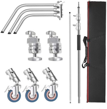 Easy to assemble: The height of the C-bracket can be adjusted from 1.2M to 3.05 M, Its solid locking capabilities ensure the safety of your lighting equipment when in use.