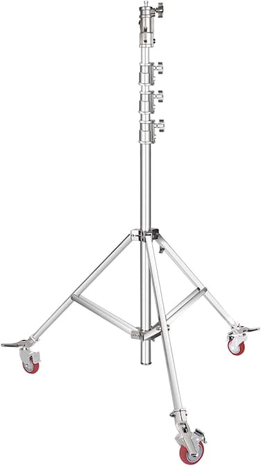 Durability and Stability; COOPIC Photo Studio Wheeled Roller Heavy Duty Stainless Steel Light Stand light stand can be trusted with your most precious lighting equipment; Sandbags can be placed on the legs to increase the base weight (Not included)