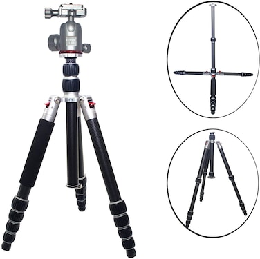 Coopic T-25C+L30S Carbon Fiber 3 In 1 Tripod Monopod Ball Head Max 63 Inch/160 cm With Fluid Metal Ball Video Head 1/4-Inch Quick Shoe Plate And Bag For DSLR Camera Video Camcorder Load Up To 15 Kg