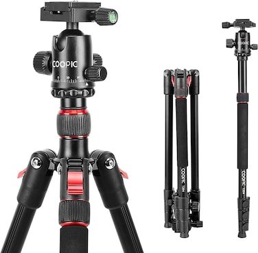 COOPIC T264 Tripod 67inch 170cm 2 in 1 Tripod and Monopod Lightweight Portable Tripod for SLR DSLR Cameras with tripod bag (Load 5Kg)