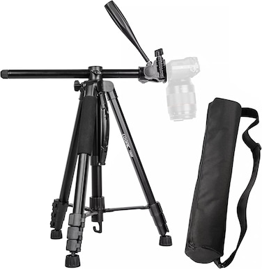 COOPIC T900 Quick release 1/4" screw is suitable for most cameras, DSLR camera, projector and telescope, etc. Your phone can be connected via the phone mount as well. The camera tripod central column can be put horizontally to realize panorama and macro shooting freely, you can capture the perfect photo or video at virtually any angle.
