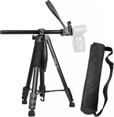 2 in 1 Tripod for camera & Transform Monopod: Four sections adjustable-height leg tubes with 4-sections center column. The center column can be quickly transformed into a 62'' height monopod. The center column can be put horizontally and pan head rotated 360°to achieve marvelous shooting experience.