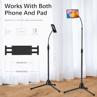 Generic Tripod Stand Holder Adjustable 360 Swivel Phone Pad Lazy Stand Holder Bracket Floor Rack Black For 3.5'' To 12.5'' Tablet Phone, Ipad(1Pc)