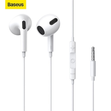 Baseus Encok H17 3.5mm Lateral in-ear Wired Earphone Button Control Headphones Lightweight Headset Compatible with 3.5mm Port Devices Support High-Definition Voice Calling White