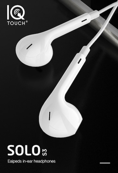 IQ TOUCH WIRED STEREO EARPHONE WITH 3.5MM JACK WHITE - SOLO-S3