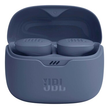 The JBL Tune Buds True Wireless Earbuds with Charging Case in Blue offer a high-quality audio experience in a compact and stylish design.
