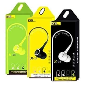 Product details of Kin K-28 Ear-phones Technical Specifications Weight: 0.037 kg Type: In-Ear Material: PVC Wearing type: In - Ear Cable Length: 1.2 m Frequency Response: 20-20000Hz Impedance: 32 ohms Sensitivity: 108dB Compatibility: Computer, Mobile phone Features