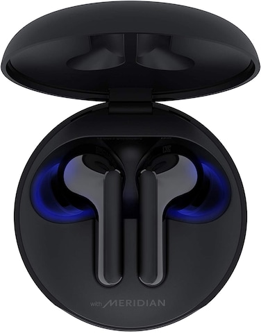 LG Tone Free Fn6 True Wireless Bluetooth Earbuds With Uvnano Wireless Charging Case, Wireless Headphones Meridian Sound, Dual Microphones For Work/Home Office, Ipx4 Water-Resistant, Black