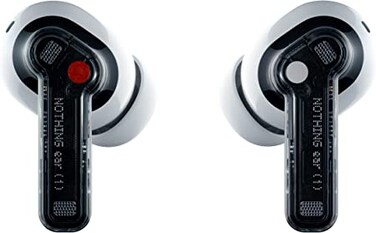 GUTSY Switch your look. Go minimal in original white or get moody with black. We believe in windows, not walls. We gave ear transparent veneers to highlight and celebrate the craftsmanship underneath, and reveal the raw beauty of our technology. SOUND OF SILENCE When you want peace and quiet, switch on active noise cancellation to capture and cancel unwanted background noise. Great for airplanes or at the office. When you want to let the world back in, transparent mode brings your surrounding noise back with just the touch of button. LETS BE CLEAR Nothing ear uses Clear Voice Technology and three highdefinition mics to make sure you come through sounding like you. As you speak, advanced algorithms reference million voice and sound combinations even winds up to 40 kmh. DIMENSIONS EAR BUD Height 28,9 MM 1.13 IN Width 21,5 MM 0.83 IN Depth 23,5 MM 0.91 IN Weight 4,7 GRAMS 0.16 OZ CASE Height 58,6 MM 2.30 IN Width 58,6 MM 2.30 IN Depth 23,7 MM 0.93 IN Weight 57,4 GRAMS OZ SOUND Driver 11,6 mm Dynamic Diaphragm Graphene Chamber size 0,34 CC Tuning Teenage Engineering Codec AAC and SBC Hybrid Active Noise Cancellation CLEAR VOICE High Definition Microphones AI Powered Environmental Noise Cance BATTERY Full charge Up to 34 hrs in the case ANC Off 24 hrs ANC On Charge Compatibility ear charges inside the case ear case charges with QI compatible wireless chargers or USBC chargers COMPATIBILITY Android 5.1 and above iOS 11 and above CONNECTIVITY Bluetooth Version v5.2 Bluetooth Profiles A2DP, AVRCP, HFP CONTENTS OF THE BOX Pair of earbuds with Ear tips in size S, M, Wireless charging case USBC cable Safety Information User Guide