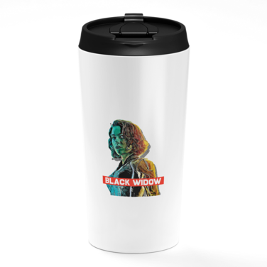 Loud Universe - Avengers Art White Travel Tumbler Black Widow Art Fan Stainless Steel Tumbler with Black Sip Lid
