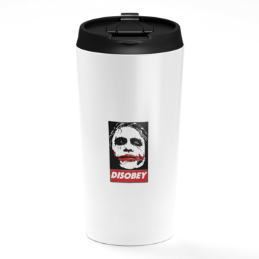 Loud Universe - Joker Disobey White Travel Tumbler Heath Ledge Classic Disobey Stainless Steel Tumbler with Black Sip Lid