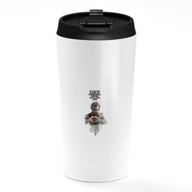Loud Universe - Joker Heath Ledger White Travel Tumbler Heath Ledger Quote Stainless Steel Tumbler with Black Sip Lid