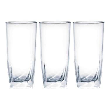 - Made from food-safe glass, this set consists of three identical highball tumblers