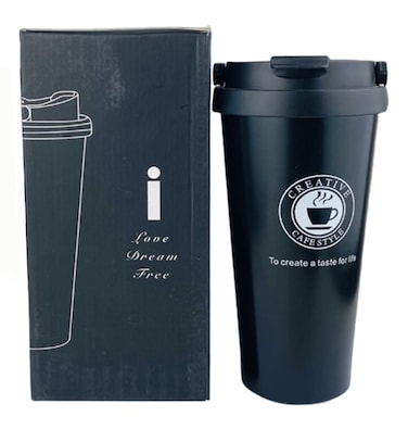 Thermal Cup Stainless Steel, Vacuum Insulated Travel Tumbler, Durable Insulated Coffee Mug, Thermal Cup with Double Partition SEALING Ring - 450ml (BLACK)