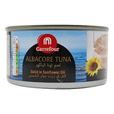 Carrefour Albacore Tuna Solid In Sunflower Oil 185g