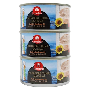 Carrefour Albacore Tuna Solid In Sunflower Oil 185g Pack of 3