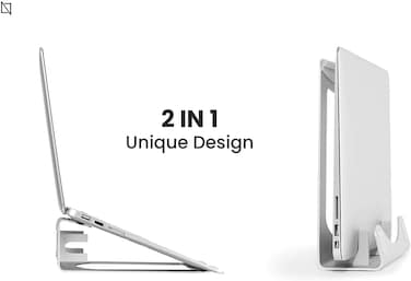 Laptop Riser & Vertical Stand for Macbook, Macbook Pro & Notebook, 2 in 1 Ergonomic Design With Non Skid Pads, Macbook Stand, Accessories By Navodesk (Silver)