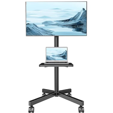 Mobile TV Cart, Rollable TV Stand For 32-70" LCD LED OLED Flat Screen TV With Curved Screens up to 40kg, Height Adjustable, Portable TV Stand with Wheels