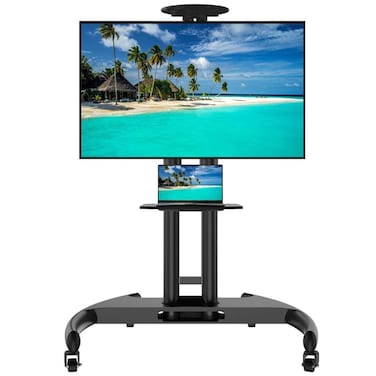 Mobile TV Cart Rolling TV Stand With Wheels for 32-75 Inch LED LCD Flat Curved Screens, Height Adjustable Trolley Floor Stand with Shelf For Home Office