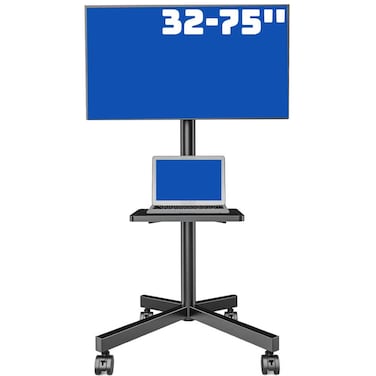 Rolling TV Stand, Mobile TV Stand with Upgraded Wheels For 32-75 Inch LCD LED OLED Flat Screen TVs up to 50 kg, Height Adjustable TV Stand With Laptop Shelf