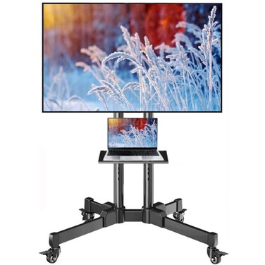 Rolling TV Stand, Mobile TV Stand with Upgraded Wheels For 32-75 Inch LCD LED OLED Flat Screen TVs up to 50 kg, Height Adjustable TV Stand With Laptop Shelf