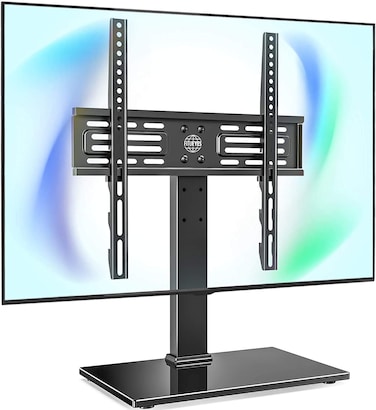 - Tabletop TV Stand for 27-55 inch LCD LED TV - 6 Level Height Adjustable TV Stand Mount with Tempered Glass Base Max VESA 400x400 mm TT103701GB