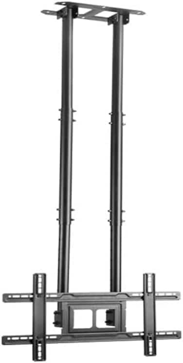 Compatibility: Compatible to 42 inches to 86 inch TV Ceiling Mount: Compatible with VESA patterns 400x600, Fits perfectly for both flat and curved LED, LCD and plasma displays. EASY TO USE: This overhead TV mount offers easy screen adjustment with smooth articulation for VESA mount compatible displays / TVs up to 110lb / 50kg. Ideal Design: For high ceiling homes, restaurants, fitness centres, schools, grocery stores, medical stores, offices, home installations, and more. EASY INSTALLATION: Simple connection to all types of ceilings. Cable management holes in the bracket plate ensure you have simple access to lines and ports.