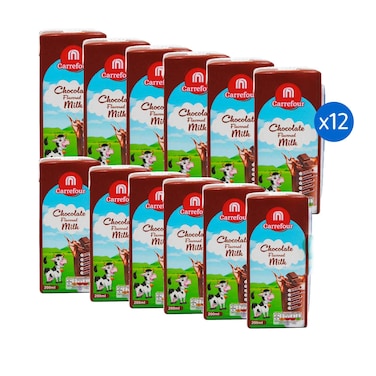 Carrefour Full-Fat Chocolate Flavoured Milk 200ml Pack of 12