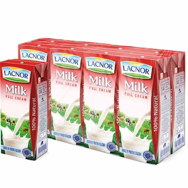 Lacnor Full Cream Milk, 180ml Pack of 8