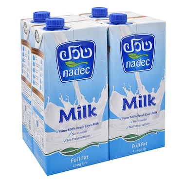 Nadec Uht Full Fat Long Life Milk 1L Pack of 4