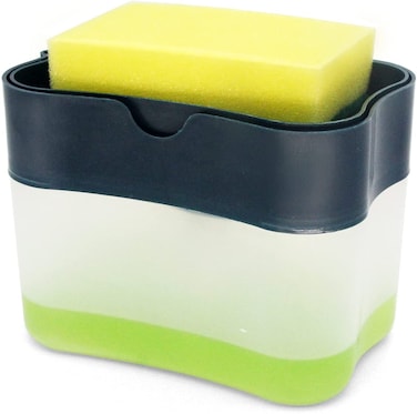 - Aeakey Soap Pump Dispenser and Sponge Holder for Kitchen Sink Dish Washing Soap dispenser 13 ounces, Silver, soap-dispenser-sponge
