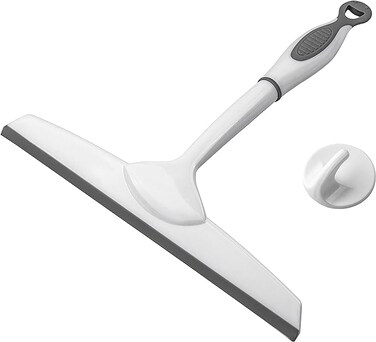 The Fitto Squeegee is a versatile cleaning tool designed for efficiency and ease of use. Made with a durable silicone blade and a comfortable grip handle, this 10-inch squeegee offers a streak-free cleaning experience on various surfaces, including shower glass doors, windows, car windshields, and tiles. Its compact size and lightweight design, coupled with the included adhesive hook, allow for convenient storage and accessibility. The white and blue color scheme adds a touch of elegance to this practical tool. Perfect for home, automotive, or commercial use.