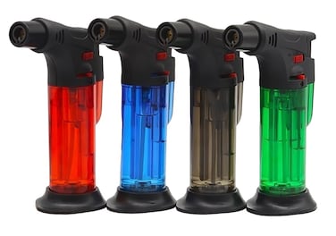 PACKAGE INCLUDED- The package comprises 4 Units of a windproof torch lighter, available in assorted colors. Fueled by butane gas, this lighter offers an adjustable flame, ensuring reliability in various conditions with a touch of colorful variety.