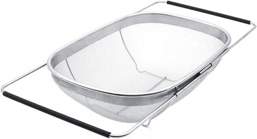 HIGHLIGHTS: Over the Sink Stainless Steel Colander Strainer Basket with Rubber Grip with Steady Base, Expandable Metal Strainer for Kitchen Sink