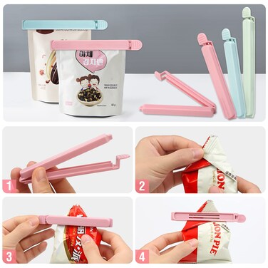 The food sealing clips are very suitable for all kinds of plastic bags and open food bags, such as: potato chip bags, oatmeal bags, biscuit bags, bread, coffee beans, frozen food, milk, etc., which can effectively prevent food becoming damp and becoming soft, can be used in offices, kitchens, camping, picnics, etc.