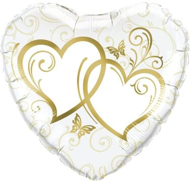 Party Time 1pc 18" White, Gold Hearts Print, Heart Shape Foil Balloon, Valentines Day Balloons Heart Balloons for Wedding, Mother's Day, Anniversary Décor - Valentines Day Decoration
