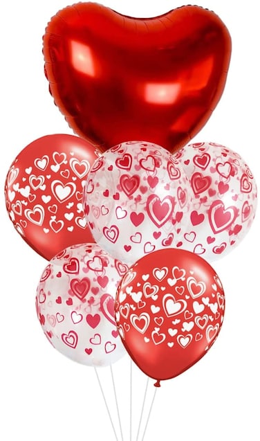 - PRODUCT DESCRIPTION: PRODUCT INCLUSIONS: Product includes: 1 Pc. Red Heart Shape Foil balloons (18 Inches), 3 Pcs. Transparent Latex Balloons with Red Heart Print-out Designs (12 Inches) and 2 Pcs. Red Latex Balloons with White Heart Print-out Designs (12 Inhces). HUGE SIZE - 18 INCH ROMANTIC DECORATIONS SPECIAL NIGHT – Do you want a luxurious party favor for Valentines Day Decor? This beautiful heart shaped Balloons will complete your surprise party for your wife, husband, parents, or any couples celebrating their special day. This Balloons will fulfill your dream party set-up. You’ll surely love the stunning impact of this classy red heart balloons *COMPLETE PACKAGE AFFORDABLE Heart Foil Balloons for him with red heart balloons is noticeable enough to everyone. A great add-on to your valentines day balloons, happy anniversary balloons, wedding, surprise proposal for sweetest day decorations event or even use it as a home/office adornment.