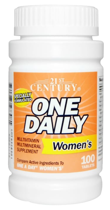 <li>21st Century's One Daily Women's is a multivitamin that helps neutralize free radicals and is complete with 16 essential vitamins and minerals, specifically formulated to support a woman's body.<li>A good multivitamin is an essential part of any well-rounded supplementation routine.<li>21st Century's women's formula provides that key nutrition to complement a healthy diet.<li>Specially formulated<li>Multivitamin Multimineral supplement<li>Free from added Sugar, Yeast, Preservatives or Artificial Flavors.