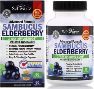 • Bio Schwartz Sambucus Elderberry, Natural Advanced Formula, Antioxidant, Immune Boost With Zinc & 200% Vitamin C. 60 Veggie Caps