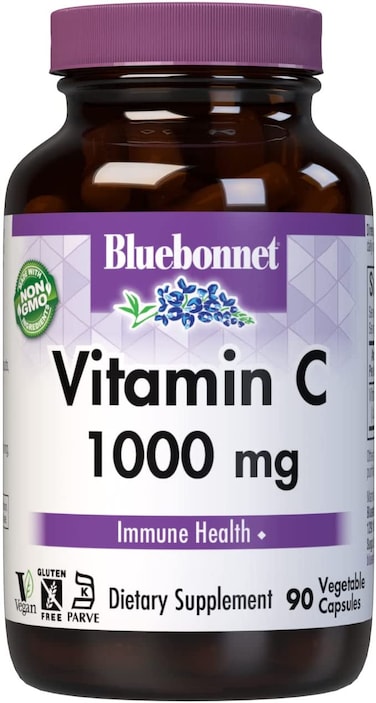 Blue Bonnet Vitamin C 1000 mg contains non-GMO, identity-preserved (IP) vitamin C from L-ascorbic acid to help support immune function. It is soy-free, gluten-free, GMO-free, kosher certified, dairy-free and vegan. Available in easy-to-swallow vegetable 90 capsules for maximum assimilation and absorption. Set Contains: Box contains 1 Bluebonnet Vitamin C 1000 mg, 90 Vegetable Capsules