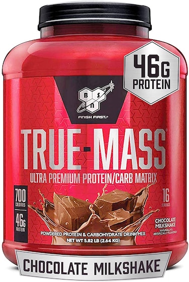 TRUE-MASS is an ultra-premium lean mass gainer, designed to support muscle growth and muscle recovery for athletes with above normal caloric needs.* The formula behind TRUE-MASS features an approximately 2-to-1 ratio of workout-fueling carbohydrates to muscle building protein, with 90 grams of carbs per serving and 50 grams of protein at 700 calories. Plus, we included 6 grams of dietary fiber per serving and Medium Chain Triglycerides to round out the nutritional value of each shake and complement the legendary great taste from BSN. Used post-workout, between meals and/or before bed, TRUE-MASS can fuel your recovery from heavy training while providing the nutrients your body needs to keep on building. TRUE-MASS features our signature ultra-premium protein formula to feed an athlete’s muscles with the essential protein building blocks. The carbohydrate blend provides the caloric support necessitated by extreme physical exertion, helping the body prepare for and support recovery from intense training. Healthy fats supply quick-burning fuel to satisfy the serious athlete’s energy demands. And all these high-quality ingredients come delivered with our exclusive flavor technology, producing one of the most mouth-watering mass-gaining shakes on the market.