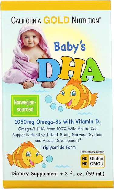 California Gold Nutrition Baby’s DHA Omega-3 DHA in Triglyceride Form with Vitamin D3 Sourced from 100% Norwegian Wild Caught Cod Supports Healthy Infant Brain, Nervous System and Visual Development* Formulated to Contain: No Gluten, No GMOs Produced in a 3rd Party Audited cGMP Registered (Certified) Facility 100% Gold Guarantee A baby's brain grows approximately 175% during the first year of life and more than doubles in size by the second year. This is why many pediatric experts believe it is important for babies to receive an adequate intake of DHA during this critical time of development. DHA is an Omega-3 Fatty Acid which is an important building block for your baby's brain, nervous system, and visual development.* California Gold Nutrition Baby's DHA is Omega-3 DHA with Vitamin D3 from 100% wild Norwegian sourced cod liver oil in the preferred triglyceride form. Every batch is tested to be free of potentially harmful levels of contaminants (e.g., heavy metals such as mercury) and surpasses the strictest international standards for purity and freshness. iHerb Blog: A Pediatrician’s Guide to Vitamins iTested Verified