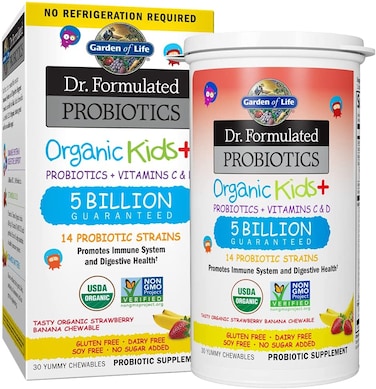 Garden Of Life Dr. Formulated Probiotics Organic Kids+ Plus Vitamin C & D, Strawberry Banana, 30 Chewables (Shelf Stable)