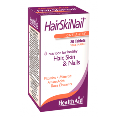 - HairSkiNail Tablets contain specific vitamins that play a significant role in helping to maintain healthy hair, skin and nails. If the diet is inadequate then a good supplement is absolutely important to the maintenance of a healthy body and healthy looking hair, skin and nails. Tablets have been formulated using vitamins, minerals and important amino acids that are metabolised to provide nutrients to these specific areas as well as maintaining the digestive system and proper blood circulation. HairSkiNail Tablets are not only a supplement for hair, skin and nails, the B vitamins promote digestion and metabolism, vitamin E contributes to normal circulation and hormonal balance, and the selected amino acids not only have strong antioxidant properties but are also good liver protectors and detoxifiers.