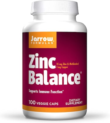 Product Description: Jarrow Formulas Zinc Balance combines Zinc L-Methionine and Copper Gluconate (15:1 ratio). Zinc L-Methionine allows zinc absorption with phytate and fiber in vegetables. Zinc supports immune function. Zinc Balance includes copper because supplemental zinc depletes copper. Take 1 capsule per day or every other day, preferably on an empty stomach or with a meal void of nuts, seeds, legumes, or grains to reduce phytic acid intake when taking zinc. From the Manufacturer Zinc Balance is a synergistic combination of Zinc L-Monomethionine and Copper Gluconate in a 15:1 ratio. Zinc L-Monomethionine resists absorption interference from fiber and phytic acid. The mineral zinc promotes skeletal and immune health. Both zinc and copper are needed to promote super oxide dismutase (SOD) activity, which plays a critical role in the body's endogenous antioxidant network. Keep out of the reach of children.